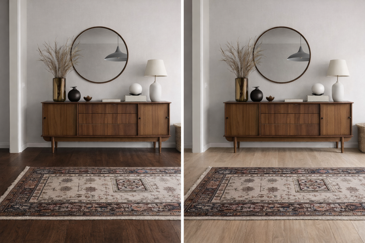同じ家具、小物のイメージで「床の色違い」でどんな雰囲気になるのかを比べてみました✨